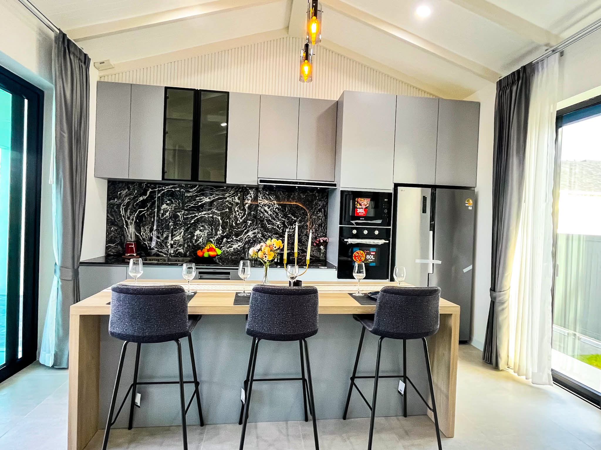 Designed with a modern open-plan layout, the villa features spacious living areas filled with natural light, high-quality materials, and tasteful furnishings that create a warm and sophisticated atmosphere. Outdoor living is perfectly complemented by a private pool and landscaped garden, ideal for relaxation and entertaining.