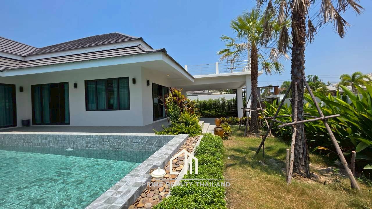 Discover modern living in a peaceful residential area of Hua Hin. This newly built pool villa offers a perfect combination of comfort, privacy, and functionality—complete with a rooftop space ideal for relaxing or entertaining.